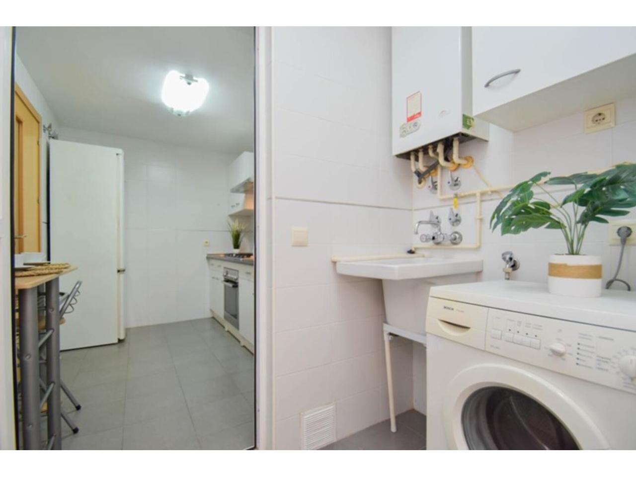 La cocina, completamente amueblada, incluye un práctico lavadero y un patio de luces que aporta luminosidad al espacio. Además, el piso se ofrece totalmente amueblado y listo para entrar a vivir, lo que lo convierte en una opción perfecta tanto como vivienda habitual como para inversión. La plaza de garaje está incluida en el precio, asegurando la comodidad de tener un espacio reservado para tu vehículo.